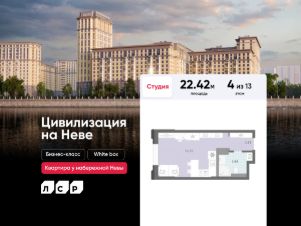 Продаётся студия в ЖК "Цивилизация на Неве" на 4 этаже. Общая площадь составляет 22.42 кв. м. Квартира с white box отделкой. Жилой комплекс "Цивилизация на Неве" располагается по адресу Санкт-Петербург, Невский.