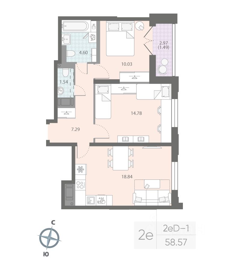 Продаётся 2-комнатная квартира в ЖК "Цивилизация на Неве" на 10 этаже. Общая площадь составляет 58.57 кв. м. Квартира с white box отделкой. Жилой комплекс "Цивилизация на Неве" располагается по адресу Санкт-Петербург, Невский.
