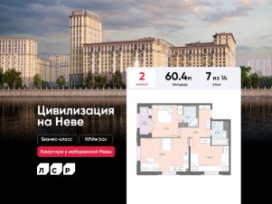 Продаётся 2-комнатная квартира в ЖК "Цивилизация на Неве" на 7 этаже. Общая площадь составляет 60.40 кв. м. Квартира с white box отделкой. Жилой комплекс "Цивилизация на Неве" располагается по адресу Санкт-Петербург, Невский.