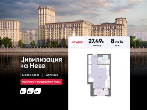 Продаётся студия в ЖК "Цивилизация на Неве" на 8 этаже. Общая площадь составляет 27.49 кв. м. Квартира с white box отделкой. Жилой комплекс "Цивилизация на Неве" располагается по адресу Санкт-Петербург, Невский.