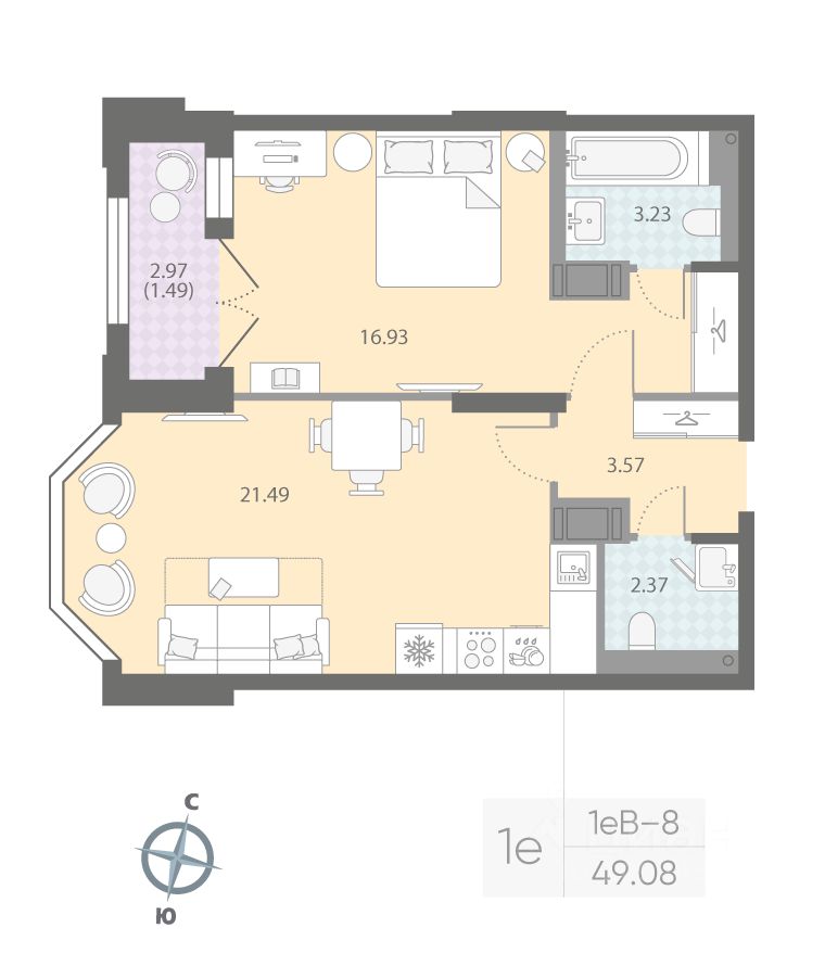 Продаётся 1-комнатная квартира в ЖК "Цивилизация на Неве" на 8 этаже. Общая площадь составляет 49.08 кв. м. Квартира с white box отделкой. Жилой комплекс "Цивилизация на Неве" располагается по адресу Санкт-Петербург, Невский.