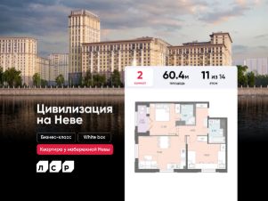Продаётся 2-комнатная квартира в ЖК "Цивилизация на Неве" на 11 этаже. Общая площадь составляет 60.40 кв. м. Квартира с white box отделкой. Жилой комплекс "Цивилизация на Неве" располагается по адресу Санкт-Петербург, Невский.