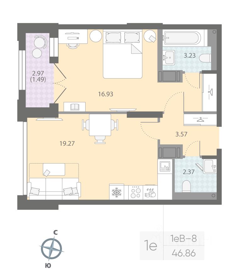 Продаётся 1-комнатная квартира в ЖК "Цивилизация на Неве" на 12 этаже. Общая площадь составляет 46.86 кв. м. Квартира с white box отделкой. Жилой комплекс "Цивилизация на Неве" располагается по адресу Санкт-Петербург, Невский.