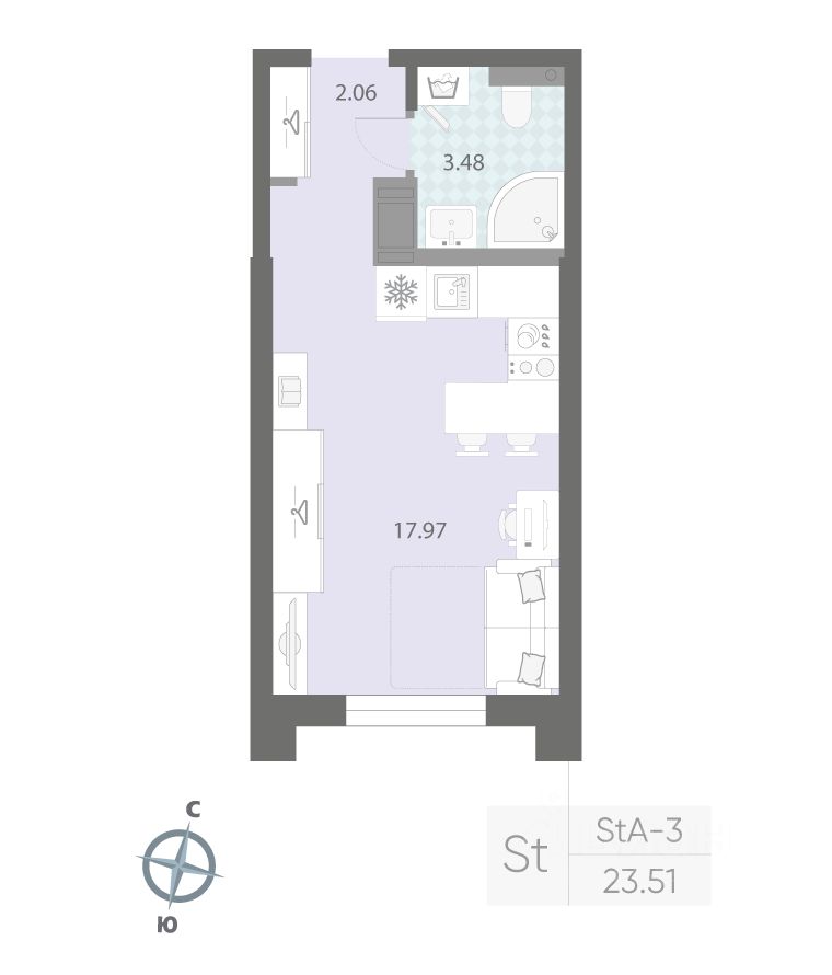 Продаётся студия в ЖК "Цивилизация на Неве" на 3 этаже. Общая площадь составляет 23.51 кв. м. Квартира с white box отделкой. Жилой комплекс "Цивилизация на Неве" располагается по адресу Санкт-Петербург, Невский.