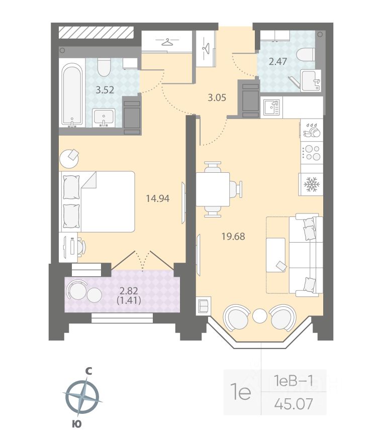 Продаётся 1-комнатная квартира в ЖК "Цивилизация на Неве" на 10 этаже. Общая площадь составляет 45.07 кв. м. Квартира с white box отделкой. Жилой комплекс "Цивилизация на Неве" располагается по адресу Санкт-Петербург, Невский.