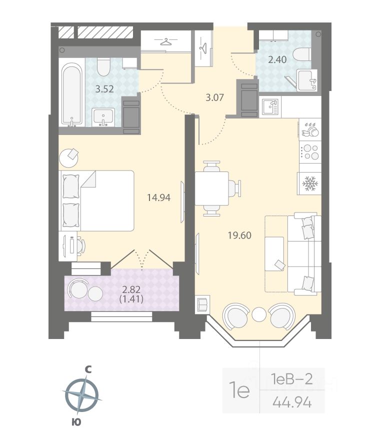 Продаётся 1-комнатная квартира в ЖК "Цивилизация на Неве" на 10 этаже. Общая площадь составляет 44.94 кв. м. Квартира с white box отделкой. Жилой комплекс "Цивилизация на Неве" располагается по адресу Санкт-Петербург, Невский.