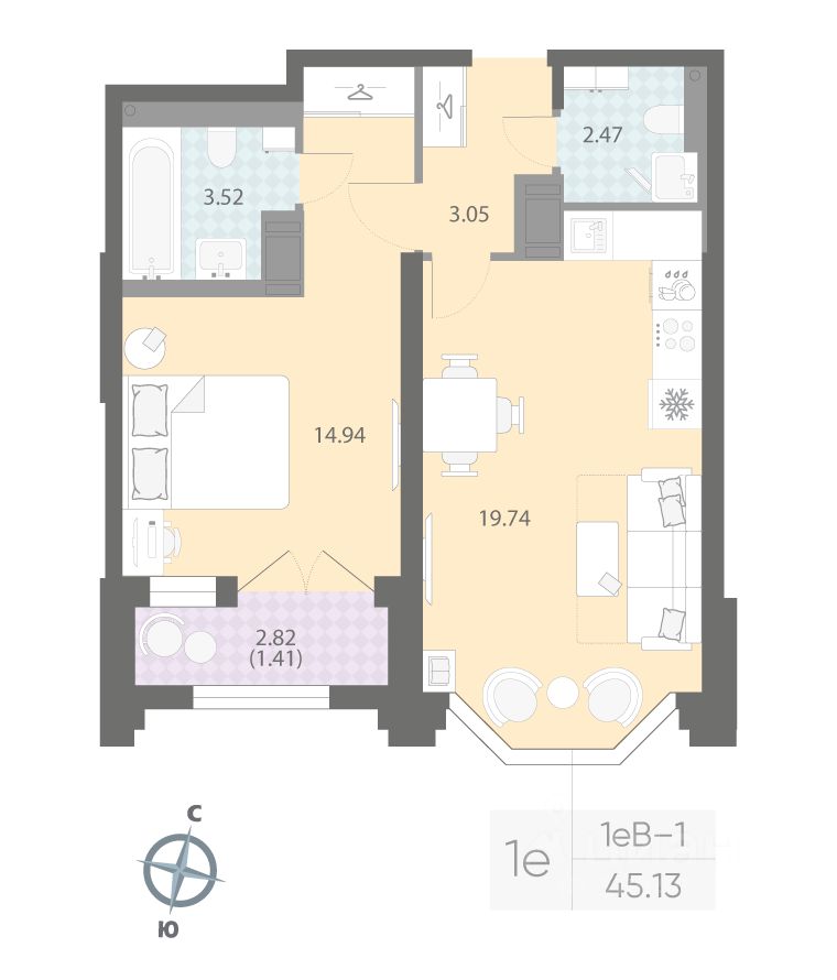 Продаётся 1-комнатная квартира в ЖК "Цивилизация на Неве" на 11 этаже. Общая площадь составляет 45.13 кв. м. Квартира с white box отделкой. Жилой комплекс "Цивилизация на Неве" располагается по адресу Санкт-Петербург, Невский.