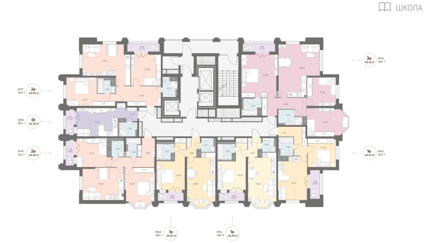 • Инфраструктура шаговой доступности на первых этажах корпусов.