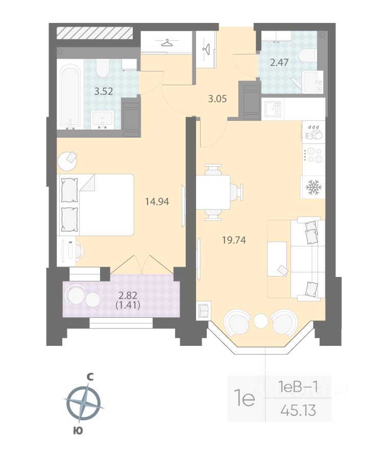 Продаётся 1-комнатная квартира в ЖК "Цивилизация на Неве" на 17 этаже. Общая площадь составляет 45.13 кв. м. Квартира с white box отделкой. Жилой комплекс "Цивилизация на Неве" располагается по адресу Санкт-Петербург, Невский.