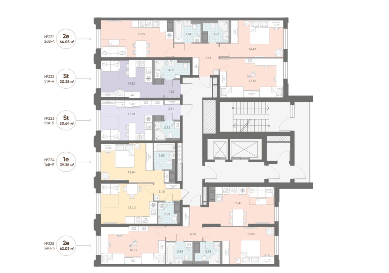 • Инфраструктура шаговой доступности на первых этажах корпусов.