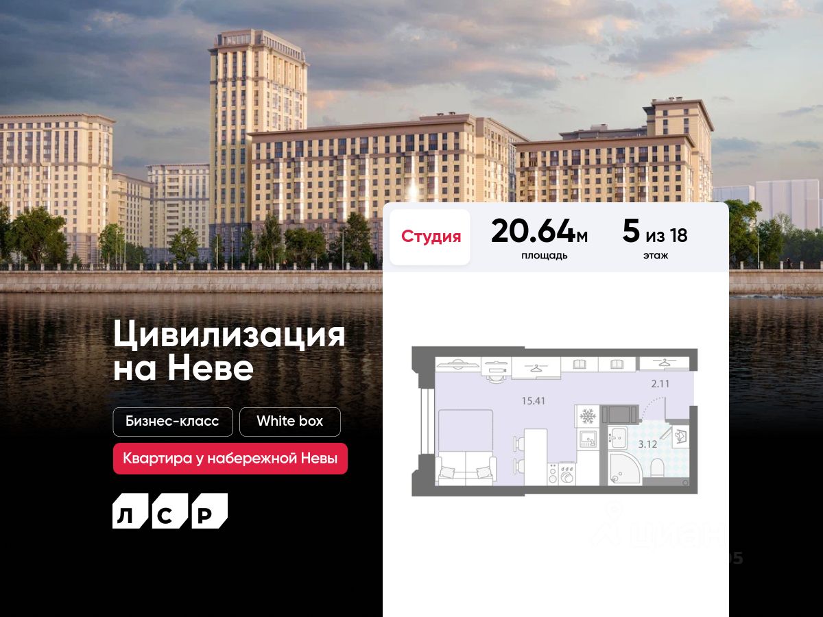 Продаётся студия в ЖК "Цивилизация на Неве" на 5 этаже. Общая площадь составляет 20.64 кв. м. Квартира с white box отделкой. Жилой комплекс "Цивилизация на Неве" располагается по адресу Санкт-Петербург, Невский.