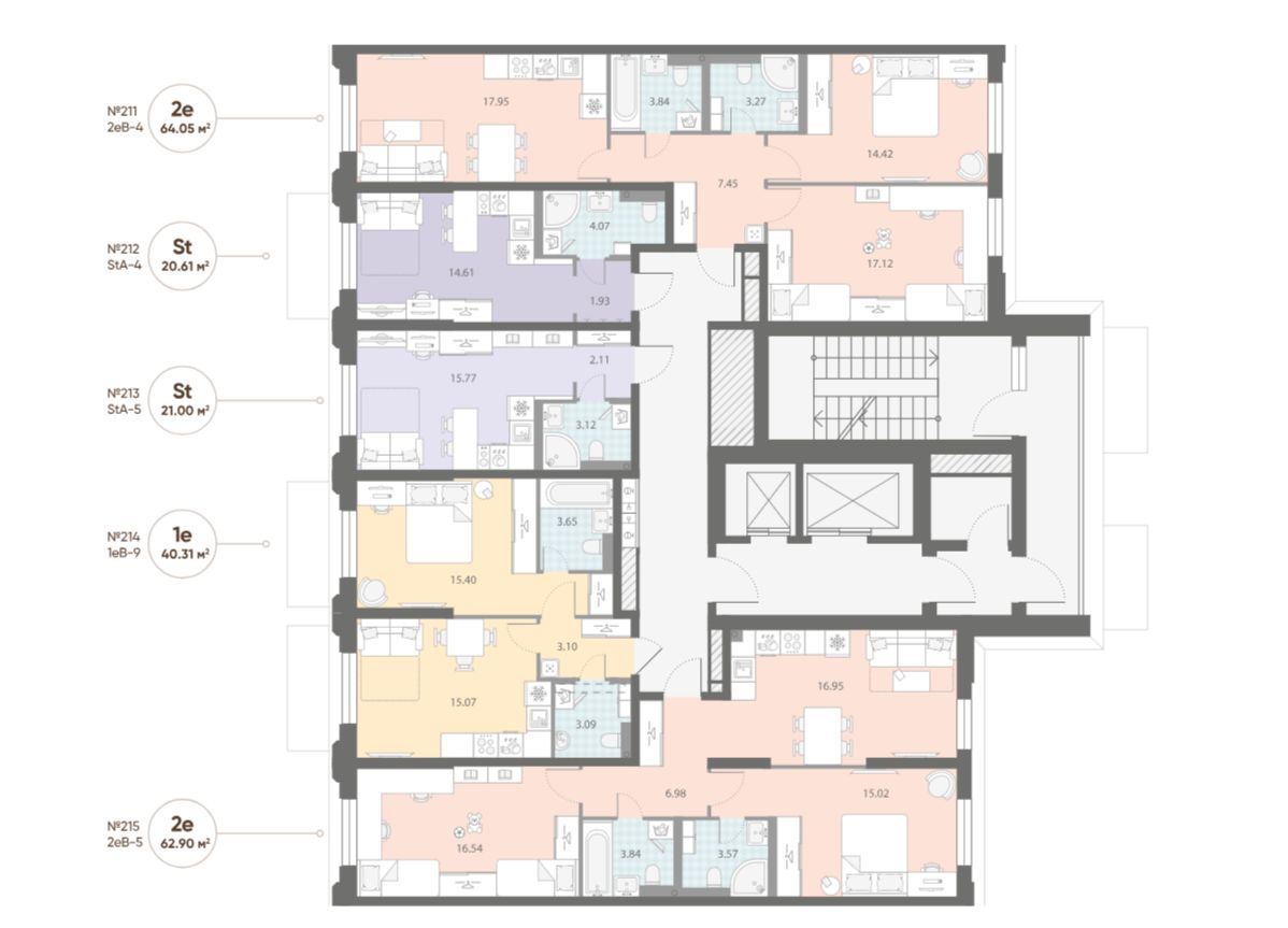 • Инфраструктура шаговой доступности на первых этажах корпусов.