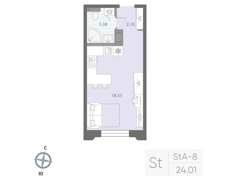 Продаётся студия в ЖК "Цивилизация на Неве" на 4 этаже. Общая площадь составляет 24.01 кв. м. Квартира с white box отделкой. Жилой комплекс "Цивилизация на Неве" располагается по адресу Санкт-Петербург, Невский.
