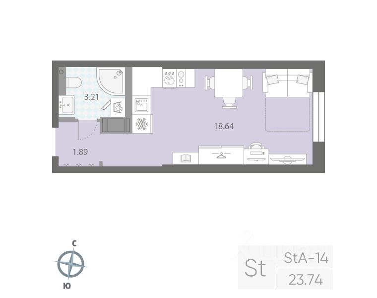 Продаётся студия в ЖК "Цивилизация на Неве" на 5 этаже. Общая площадь составляет 23.74 кв. м. Квартира с white box отделкой. Жилой комплекс "Цивилизация на Неве" располагается по адресу Санкт-Петербург, Невский.