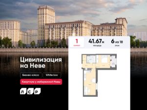 Продаётся 1-комнатная квартира в ЖК "Цивилизация на Неве" на 6 этаже. Общая площадь составляет 41.67 кв. м. Квартира с white box отделкой. Жилой комплекс "Цивилизация на Неве" располагается по адресу Санкт-Петербург, Невский.