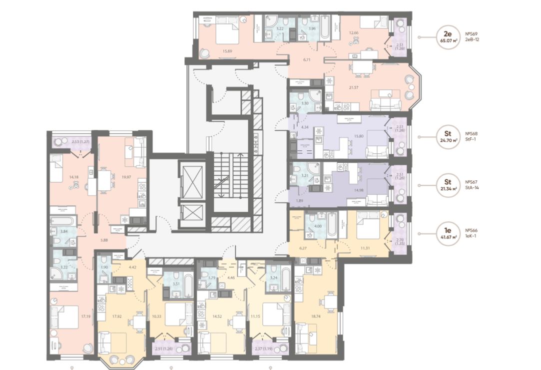 • Инфраструктура шаговой доступности на первых этажах корпусов.