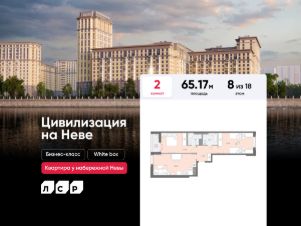 Продаётся 2-комнатная квартира в ЖК "Цивилизация на Неве" на 8 этаже. Общая площадь составляет 65.17 кв. м. Квартира с white box отделкой. Жилой комплекс "Цивилизация на Неве" располагается по адресу Санкт-Петербург, Невский.
