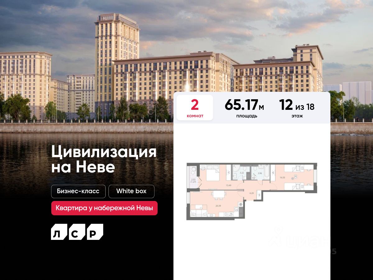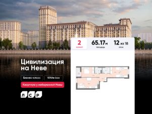 Продаётся 2-комнатная квартира в ЖК "Цивилизация на Неве" на 12 этаже. Общая площадь составляет 65.17 кв. м. Квартира с white box отделкой. Жилой комплекс "Цивилизация на Неве" располагается по адресу Санкт-Петербург, Невский.