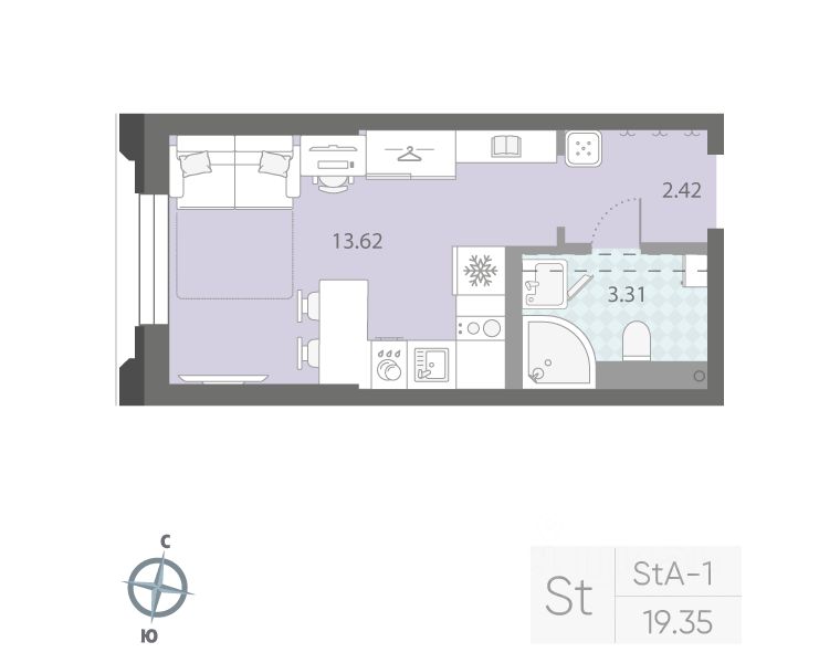 Продаётся студия в ЖК "Цивилизация на Неве" на 2 этаже. Общая площадь составляет 19.35 кв. м. Квартира с white box отделкой. Жилой комплекс "Цивилизация на Неве" располагается по адресу Санкт-Петербург, Невский.