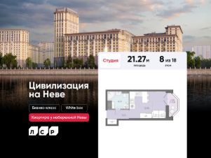 Продаётся студия в ЖК "Цивилизация на Неве" на 8 этаже. Общая площадь составляет 21.27 кв. м. Квартира с white box отделкой. Жилой комплекс "Цивилизация на Неве" располагается по адресу Санкт-Петербург, Невский.