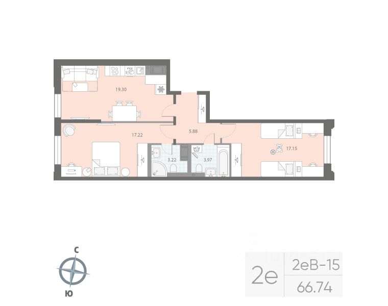 Продаётся 2-комнатная квартира в ЖК "Цивилизация на Неве" на 5 этаже. Общая площадь составляет 66.74 кв. м. Квартира с white box отделкой. Жилой комплекс "Цивилизация на Неве" располагается по адресу Санкт-Петербург, Невский.