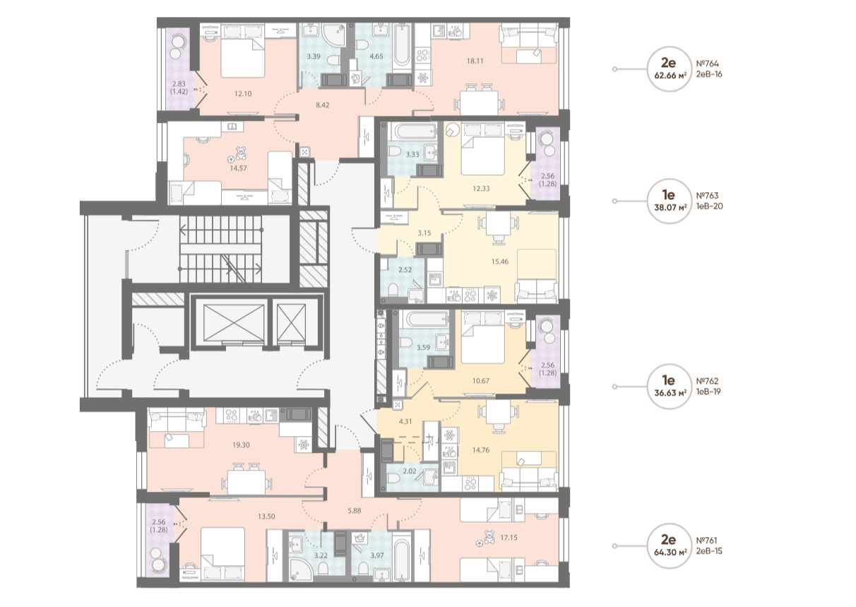 • Инфраструктура шаговой доступности на первых этажах корпусов.