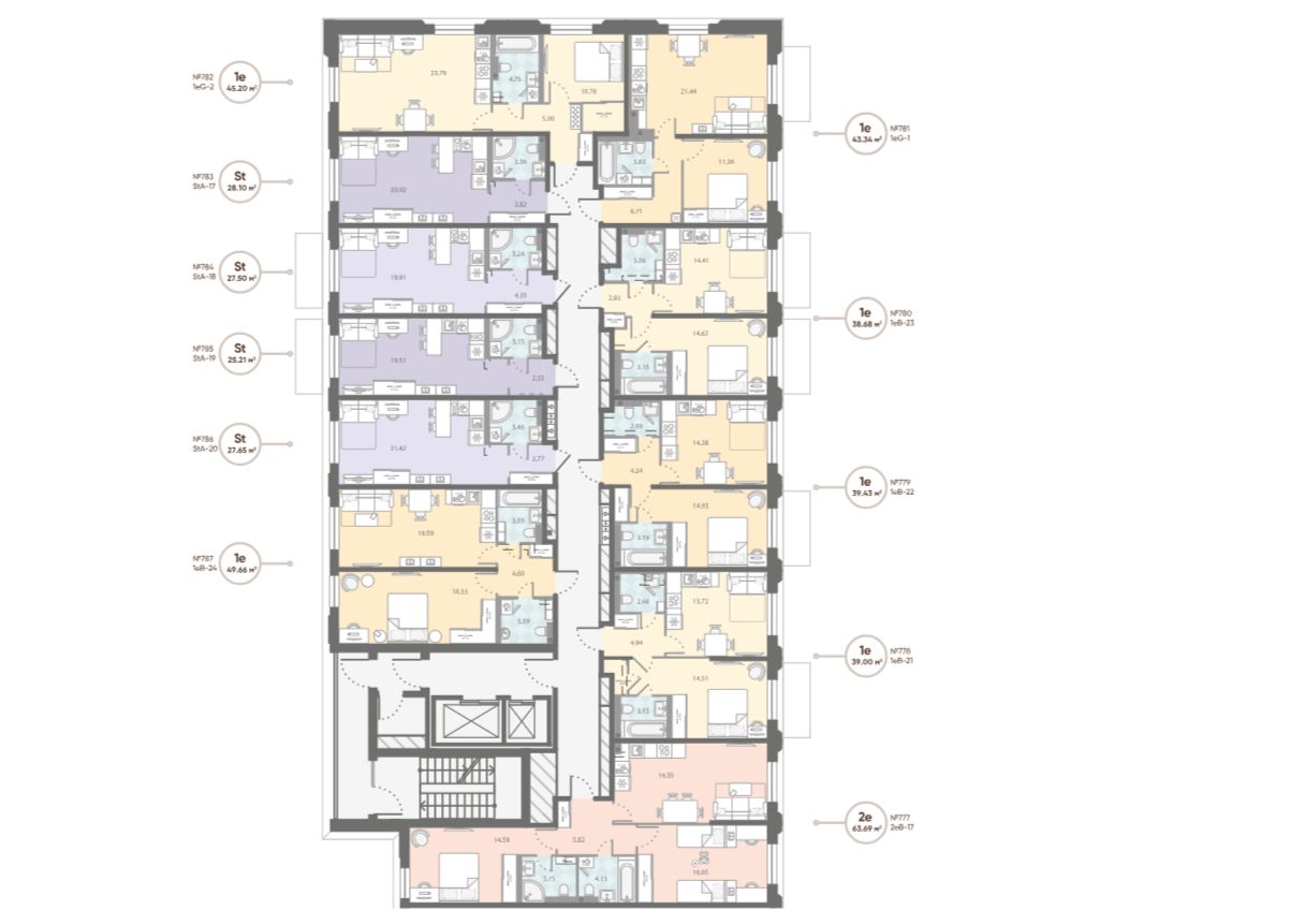 • Инфраструктура шаговой доступности на первых этажах корпусов.