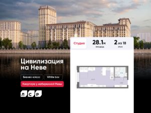 Продаётся студия в ЖК "Цивилизация на Неве" на 2 этаже. Общая площадь составляет 28.10 кв. м. Квартира с white box отделкой. Жилой комплекс "Цивилизация на Неве" располагается по адресу Санкт-Петербург, Невский.
