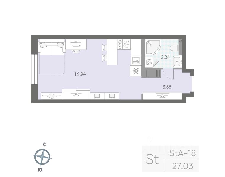 Продаётся студия в ЖК "Цивилизация на Неве" на 5 этаже. Общая площадь составляет 27.03 кв. м. Квартира с white box отделкой. Жилой комплекс "Цивилизация на Неве" располагается по адресу Санкт-Петербург, Невский.