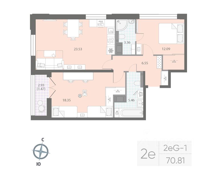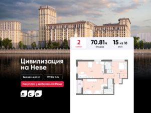 Продаётся 2-комнатная квартира в ЖК "Цивилизация на Неве" на 15 этаже. Общая площадь составляет 70.81 кв. м. Квартира с white box отделкой. Жилой комплекс "Цивилизация на Неве" располагается по адресу Санкт-Петербург, Невский.