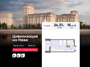 Продаётся студия в ЖК "Цивилизация на Неве" на 15 этаже. Общая площадь составляет 24.37 кв. м. Квартира с white box отделкой. Жилой комплекс "Цивилизация на Неве" располагается по адресу Санкт-Петербург, Невский.