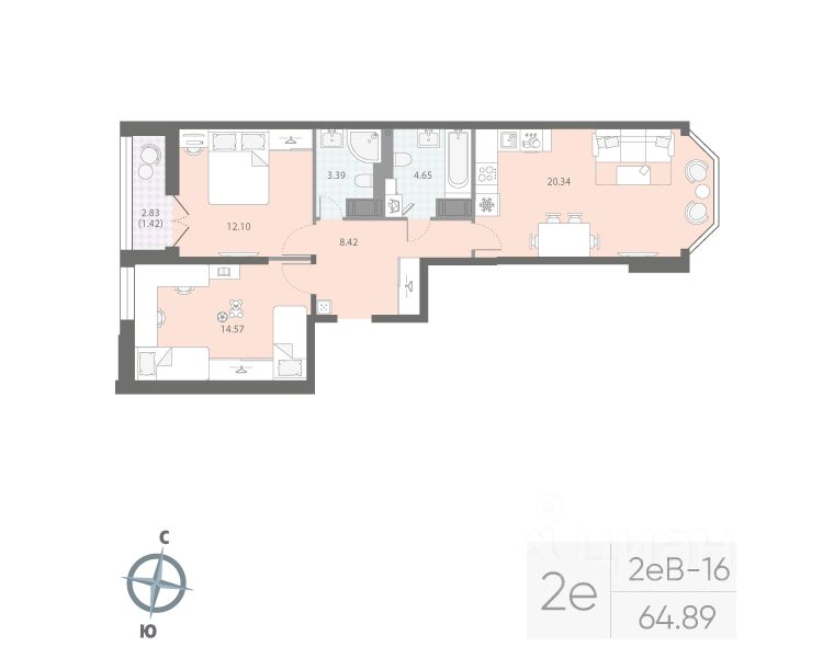 Продаётся 2-комнатная квартира в ЖК "Цивилизация на Неве" на 7 этаже. Общая площадь составляет 64.89 кв. м. Квартира с white box отделкой. Жилой комплекс "Цивилизация на Неве" располагается по адресу Санкт-Петербург, Невский.