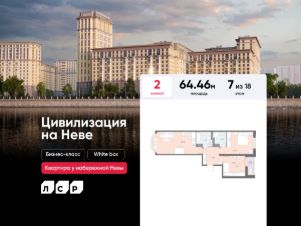 Продаётся 2-комнатная квартира в ЖК "Цивилизация на Неве" на 7 этаже. Общая площадь составляет 64.46 кв. м. Квартира с white box отделкой. Жилой комплекс "Цивилизация на Неве" располагается по адресу Санкт-Петербург, Невский.