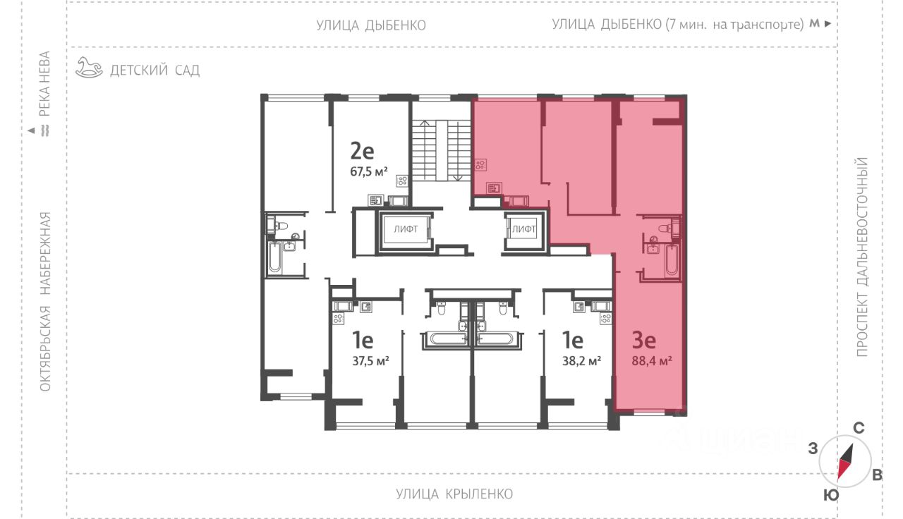 • 5 мин на авто до станции метро "Улица Дыбенко";