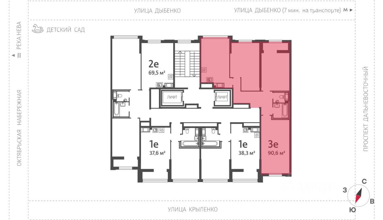 • 5 мин на авто до станции метро "Улица Дыбенко";