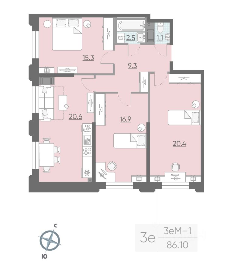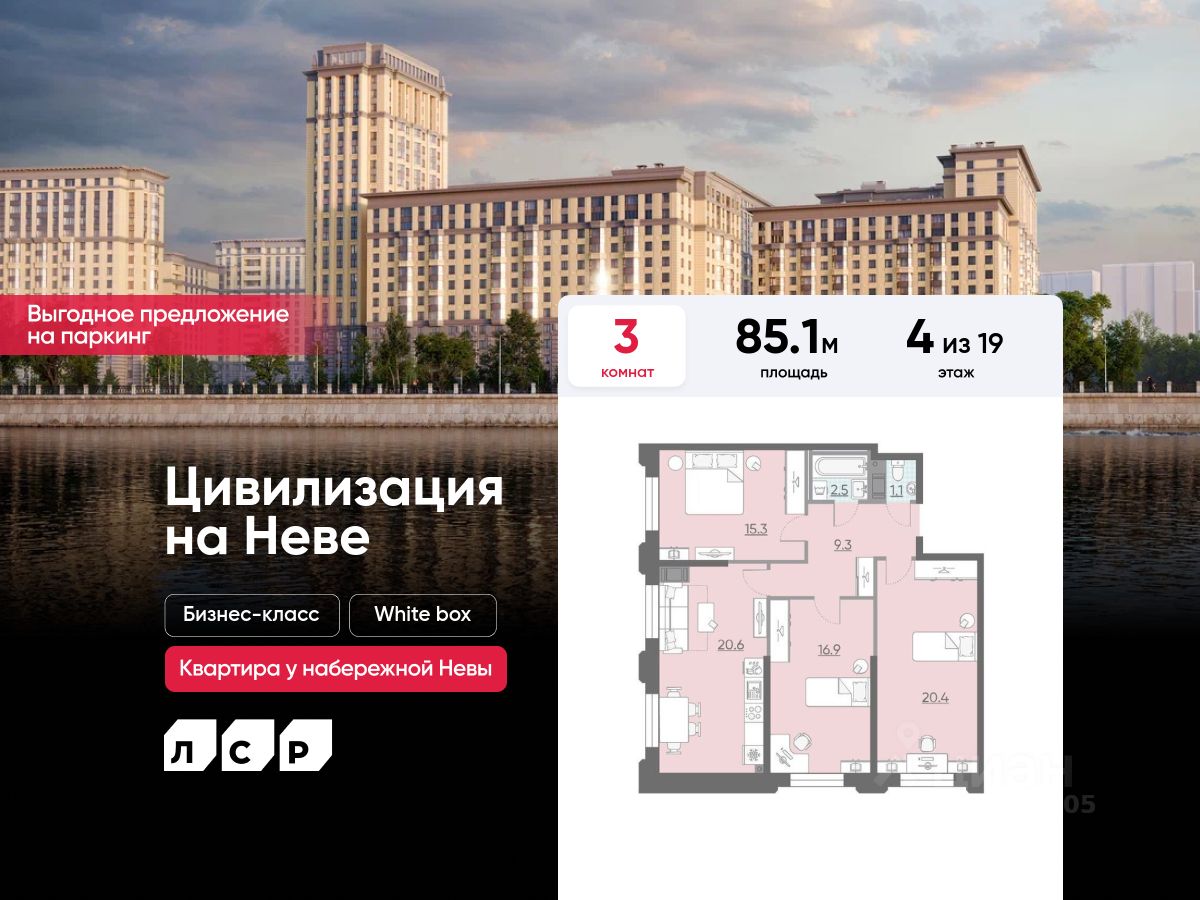 Продаётся 3-комнатная квартира в ЖК "Цивилизация на Неве" на 4 этаже. Общая площадь составляет 85.10 кв. м. Квартира с white box отделкой. Жилой комплекс "Цивилизация на Неве" располагается по адресу Санкт-Петербург, Невский.