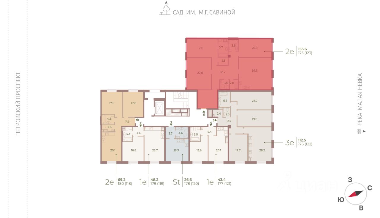 Цена действует при 100% оплате и на определенные ипотечные программы. Подробности — в отделе продаж по телефону. ЖК Нева Хаус - это масштабный проект элитного класса, который возведен застройщиком "ЛСР. Недвижимость - Северо-Запад" в одном из самых зеленых уголков Петроградского района. Он состоит из восьми монолитных разновысотных корпусов, в архитектурном облике которых гармонично сочетаются элементы постмодернизма, классического стиля и современных тенденций. Дизайн-проект ЖК был разработан известным петербуржским архитектором Евгением Герасимовым. Наружные стены домов оснащены износостойкими навесными фасадами и облицованы декоративным клинкерным кирпичом нескольких оттенков. Высота домов в проекте варьируется от 7 до 9 этажей. Комплекс оснащен современным оборудованием, которое обеспечивает жильцам максимальный уровень безопасности и комфорта. Покупателям предлагается разнообразный выбор планировок элитного жилья, начиная от просторных однокомнатных квартир и заканчивая пятикомнатными видовыми пентхаусами. Высота потолков в помещениях составляет 3-3.8 метра. Во всех форматах жилья предусмотрены большие кухни (от 12 кв. м), зонированные прихожие с отдельными гардеробными, увеличенные оконные проемы, ниши для установки кондиционеров и изолированные от бытовых помещений спальни. Разнообразие планировок включает варианты с просторными террасами, объединенными кухнями-гостиными, раздельными санузлами и дополнительными туалетами, эркерами и помещениями нестандартной формы. Площадь квартир - 46.87-300.79 квадратных метров. Базовая стоимость жилья не включает предчистовую или чистовую отделку помещений. В готовых квартирах установлены усиленные дизайнерские двери, оконные блоки с дерево-алюминиевыми рамами из натурального дуба и двойными стеклопакетами, современные отопительные радиаторы, оснащенные регуляторами температуры, и счетчики с функцией автоматического сбора и передачи данных. Закрытые дворы комплекса превращены в уютные прогулочные зоны для детей и взрослых. Застройщик выполнил озеленение пространства, согласно авторскому проекту ландшафтного дизайна, проложил велодорожки и тротуары, организовал закрытую набережную, установил многофункциональные спортивно-игровые городки, беседки, лавочки и стойки для велосипедов. Вся территория ЖК круглосуточно находится под охраной и видеонаблюдением. Для автотранспорта жильцов новостройки предусмотрены подземные паркинги с возможностью доступа из всех парадных на лифте. Их общая вместимость составляет 907 машиномест. Для посетителей организованы наземные стоянки по внешнему периметру территории. Жилой комплекс Нева Хаус находится в элитном районе города в окружении разнообразных объектов инфраструктуры. В пешей доступности работают гимназии, бутики, рестораны, спортивный стадион "Петровский" и филиалы ВУЗов, есть парк и яхт-клуб. Купить квартиру в жилом комплексе Нева Хаус можно в рассрочку или с привлечением ипотечного кредита, в том числе, и на льготных условиях с использованием воен