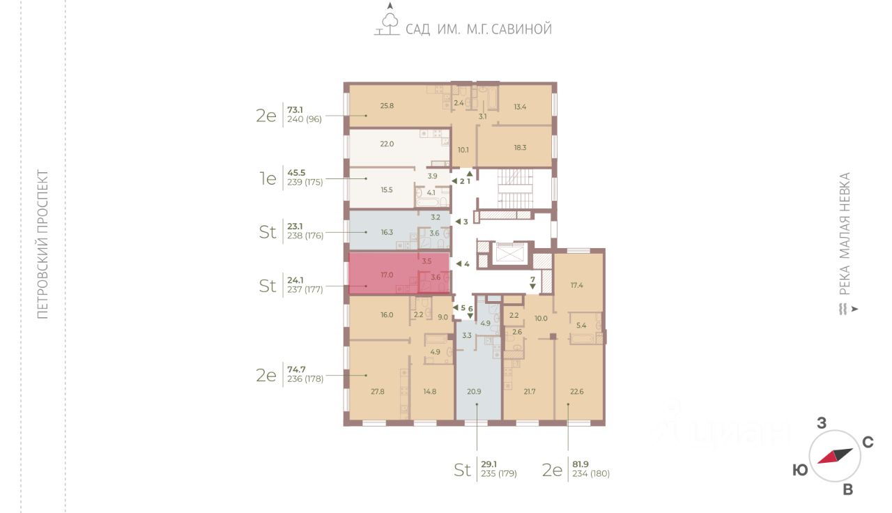 Цена действует при 100% оплате и на определенные ипотечные программы. Подробности — в отделе продаж по телефону. ЖК Нева Хаус - это масштабный проект элитного класса, который возведен застройщиком "ЛСР. Недвижимость - Северо-Запад" в одном из самых зеленых уголков Петроградского района. Он состоит из восьми монолитных разновысотных корпусов, в архитектурном облике которых гармонично сочетаются элементы постмодернизма, классического стиля и современных тенденций. Дизайн-проект ЖК был разработан известным петербуржским архитектором Евгением Герасимовым. Наружные стены домов оснащены износостойкими навесными фасадами и облицованы декоративным клинкерным кирпичом нескольких оттенков. Высота домов в проекте варьируется от 7 до 9 этажей. Комплекс оснащен современным оборудованием, которое обеспечивает жильцам максимальный уровень безопасности и комфорта. Покупателям предлагается разнообразный выбор планировок элитного жилья, начиная от просторных однокомнатных квартир и заканчивая пятикомнатными видовыми пентхаусами. Высота потолков в помещениях составляет 3-3.8 метра. Во всех форматах жилья предусмотрены большие кухни (от 12 кв. м), зонированные прихожие с отдельными гардеробными, увеличенные оконные проемы, ниши для установки кондиционеров и изолированные от бытовых помещений спальни. Разнообразие планировок включает варианты с просторными террасами, объединенными кухнями-гостиными, раздельными санузлами и дополнительными туалетами, эркерами и помещениями нестандартной формы. Площадь квартир - 46.87-300.79 квадратных метров. Базовая стоимость жилья не включает предчистовую или чистовую отделку помещений. В готовых квартирах установлены усиленные дизайнерские двери, оконные блоки с дерево-алюминиевыми рамами из натурального дуба и двойными стеклопакетами, современные отопительные радиаторы, оснащенные регуляторами температуры, и счетчики с функцией автоматического сбора и передачи данных. Закрытые дворы комплекса превращены в уютные прогулочные зоны для детей и взрослых. Застройщик выполнил озеленение пространства, согласно авторскому проекту ландшафтного дизайна, проложил велодорожки и тротуары, организовал закрытую набережную, установил многофункциональные спортивно-игровые городки, беседки, лавочки и стойки для велосипедов. Вся территория ЖК круглосуточно находится под охраной и видеонаблюдением. Для автотранспорта жильцов новостройки предусмотрены подземные паркинги с возможностью доступа из всех парадных на лифте. Их общая вместимость составляет 907 машиномест. Для посетителей организованы наземные стоянки по внешнему периметру территории. Жилой комплекс Нева Хаус находится в элитном районе города в окружении разнообразных объектов инфраструктуры. В пешей доступности работают гимназии, бутики, рестораны, спортивный стадион "Петровский" и филиалы ВУЗов, есть парк и яхт-клуб. Купить квартиру в жилом комплексе Нева Хаус можно в рассрочку или с привлечением ипотечного кредита, в том числе, и на льготных условиях с использованием воен