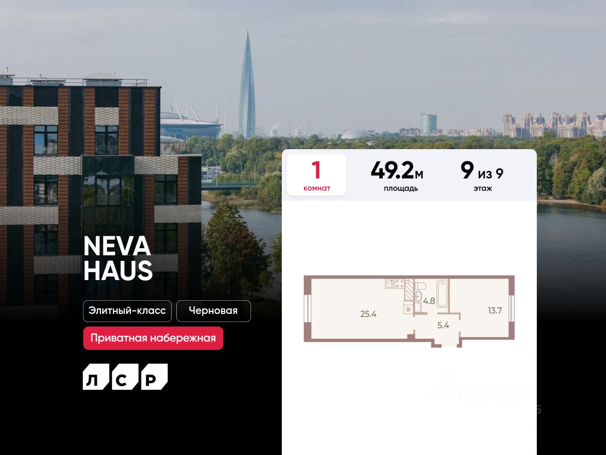 Продаётся 1-комнатная квартира в ЖК "NEVA HAUS" на 9 этаже. Общая площадь составляет 49.20 кв. м. Квартира без отделки. Жилой комплекс "NEVA HAUS" располагается по адресу Санкт-Петербург, Петроградский.
