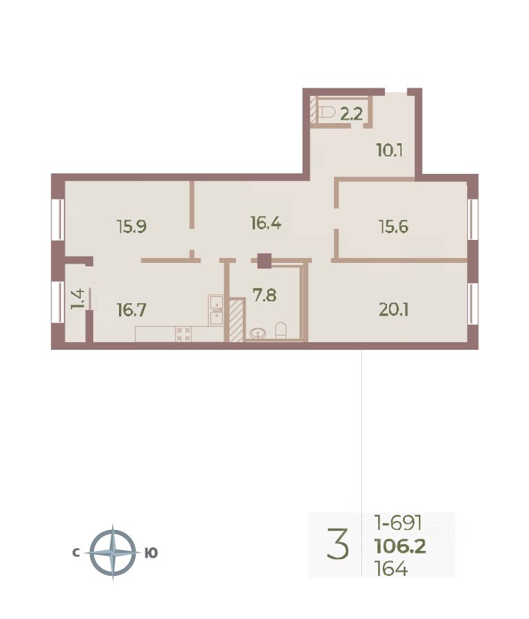 Продаётся 3-комнатная квартира в ЖК "NEVA HAUS" на 9 этаже. Общая площадь составляет 106.20 кв. м. Квартира без отделки. Жилой комплекс "NEVA HAUS" располагается по адресу Санкт-Петербург, Петроградский.