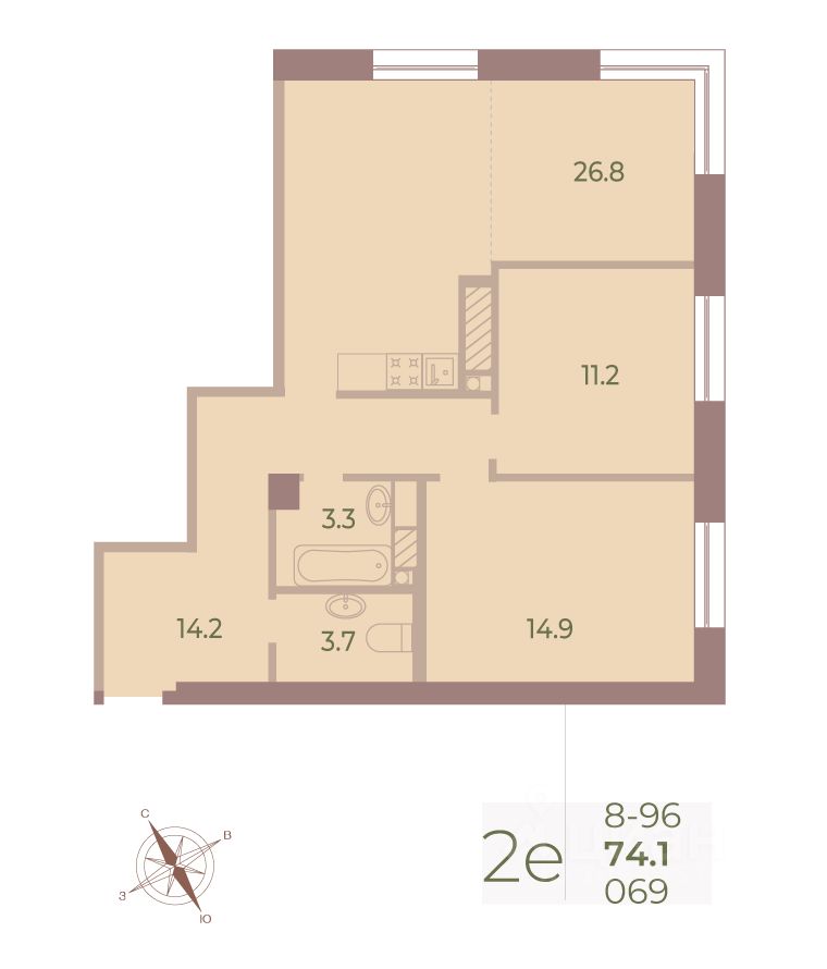 Продаётся 2-комнатная квартира в ЖК "NEVA HAUS" на 9 этаже. Общая площадь составляет 74.10 кв. м. Квартира без отделки. Жилой комплекс "NEVA HAUS" располагается по адресу Санкт-Петербург, Петроградский.