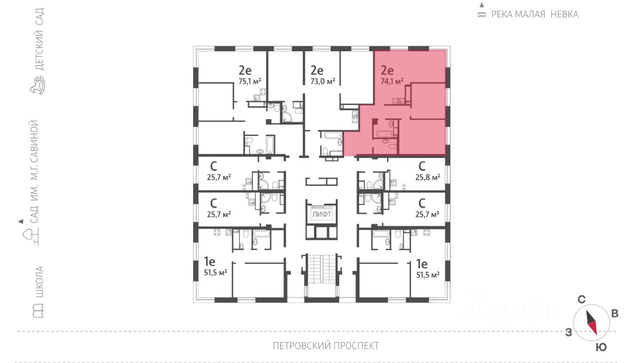 Жилой комплекс Нева Хаус находится в элитном районе города в окружении разнообразных объектов инфраструктуры. В пешей доступности работают гимназии, бутики, рестораны, спортивный стадион "Петровский" и филиалы ВУЗов, есть парк и яхт-клуб.