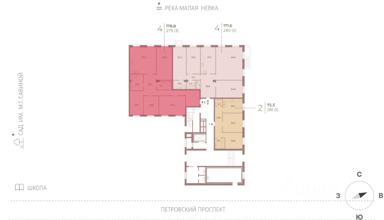 Продаётся 4-комнатная квартира в ЖК "NEVA HAUS" на 1 этаже. Общая площадь составляет 178.80 кв. м. Квартира без отделки. Жилой комплекс "NEVA HAUS" располагается по адресу Санкт-Петербург, Петроградский.