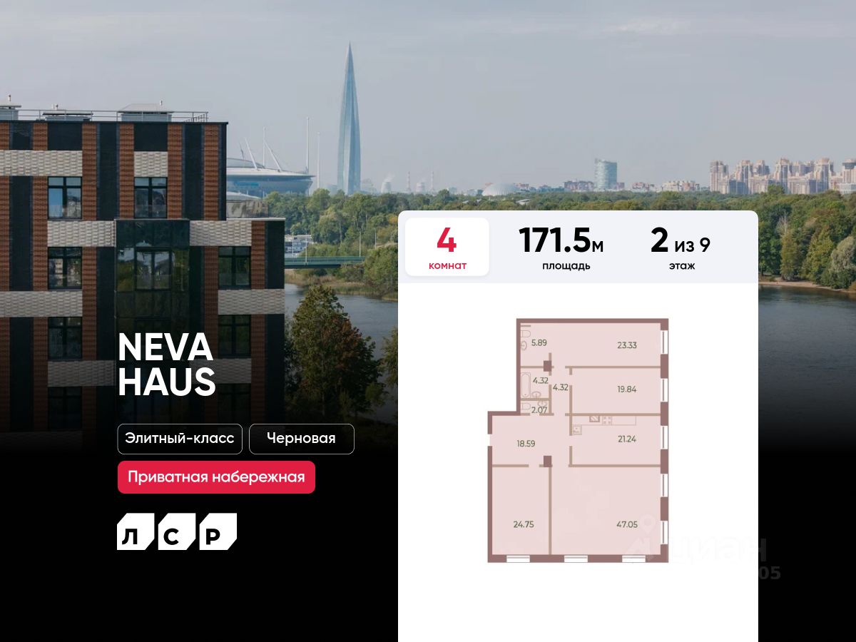 Продаётся 4-комнатная квартира в ЖК "NEVA HAUS" на 2 этаже. Общая площадь составляет 171.50 кв. м. Квартира без отделки. Жилой комплекс "NEVA HAUS" располагается по адресу Санкт-Петербург, Петроградский.