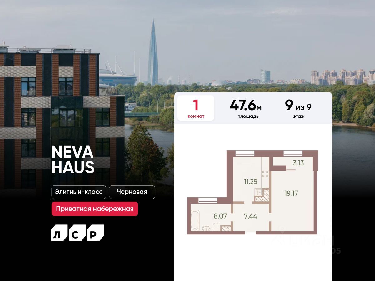 Продаётся 1-комнатная квартира в ЖК "NEVA HAUS" на 9 этаже. Общая площадь составляет 47.60 кв. м. Квартира без отделки. Жилой комплекс "NEVA HAUS" располагается по адресу Санкт-Петербург, Петроградский.