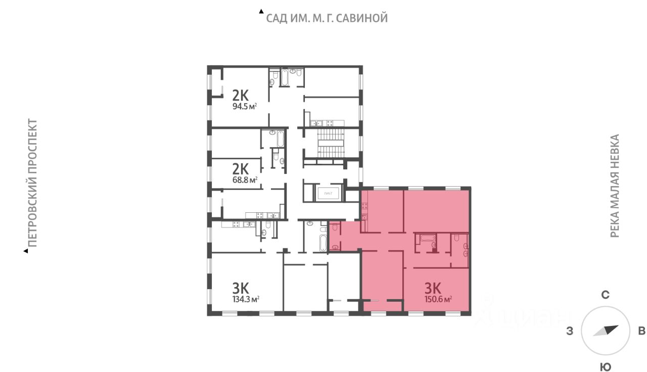 • 4 мин на авто до Крестовского острова;