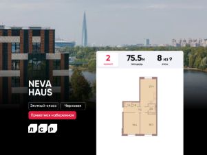 Продаётся 2-комнатная квартира в ЖК "NEVA HAUS" на 8 этаже. Общая площадь составляет 75.50 кв. м. Квартира без отделки. Жилой комплекс "NEVA HAUS" располагается по адресу Санкт-Петербург, Петроградский.