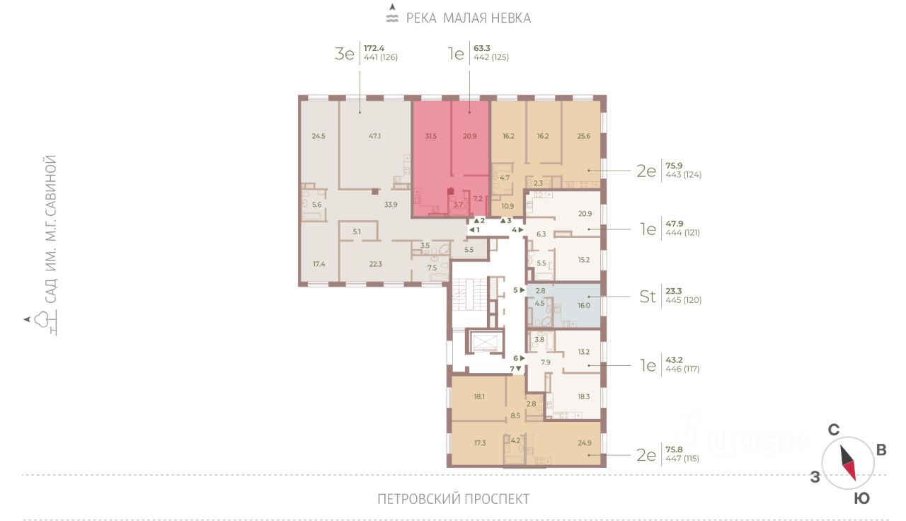 Цена действует при 100% оплате и на определенные ипотечные программы. Подробности — в отделе продаж по телефону. ЖК Нева Хаус - это масштабный проект элитного класса, который возведен застройщиком "ЛСР. Недвижимость - Северо-Запад" в одном из самых зеленых уголков Петроградского района. Он состоит из восьми монолитных разновысотных корпусов, в архитектурном облике которых гармонично сочетаются элементы постмодернизма, классического стиля и современных тенденций. Дизайн-проект ЖК был разработан известным петербуржским архитектором Евгением Герасимовым. Наружные стены домов оснащены износостойкими навесными фасадами и облицованы декоративным клинкерным кирпичом нескольких оттенков. Высота домов в проекте варьируется от 7 до 9 этажей. Комплекс оснащен современным оборудованием, которое обеспечивает жильцам максимальный уровень безопасности и комфорта. Покупателям предлагается разнообразный выбор планировок элитного жилья, начиная от просторных однокомнатных квартир и заканчивая пятикомнатными видовыми пентхаусами. Высота потолков в помещениях составляет 3-3.8 метра. Во всех форматах жилья предусмотрены большие кухни (от 12 кв. м), зонированные прихожие с отдельными гардеробными, увеличенные оконные проемы, ниши для установки кондиционеров и изолированные от бытовых помещений спальни. Разнообразие планировок включает варианты с просторными террасами, объединенными кухнями-гостиными, раздельными санузлами и дополнительными туалетами, эркерами и помещениями нестандартной формы. Площадь квартир - 46.87-300.79 квадратных метров. Базовая стоимость жилья не включает предчистовую или чистовую отделку помещений. В готовых квартирах установлены усиленные дизайнерские двери, оконные блоки с дерево-алюминиевыми рамами из натурального дуба и двойными стеклопакетами, современные отопительные радиаторы, оснащенные регуляторами температуры, и счетчики с функцией автоматического сбора и передачи данных. Закрытые дворы комплекса превращены в уютные прогулочные зоны для детей и взрослых. Застройщик выполнил озеленение пространства, согласно авторскому проекту ландшафтного дизайна, проложил велодорожки и тротуары, организовал закрытую набережную, установил многофункциональные спортивно-игровые городки, беседки, лавочки и стойки для велосипедов. Вся территория ЖК круглосуточно находится под охраной и видеонаблюдением. Для автотранспорта жильцов новостройки предусмотрены подземные паркинги с возможностью доступа из всех парадных на лифте. Их общая вместимость составляет 907 машиномест. Для посетителей организованы наземные стоянки по внешнему периметру территории. Жилой комплекс Нева Хаус находится в элитном районе города в окружении разнообразных объектов инфраструктуры. В пешей доступности работают гимназии, бутики, рестораны, спортивный стадион "Петровский" и филиалы ВУЗов, есть парк и яхт-клуб. Купить квартиру в жилом комплексе Нева Хаус можно в рассрочку или с привлечением ипотечного кредита, в том числе, и на льготных условиях с использованием воен