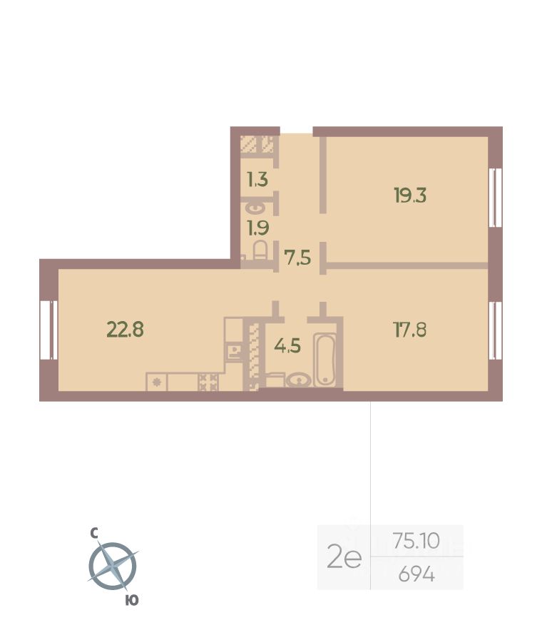 Продаётся 2-комнатная квартира в ЖК "NEVA HAUS" на 9 этаже. Общая площадь составляет 75.10 кв. м. Квартира без отделки. Жилой комплекс "NEVA HAUS" располагается по адресу Санкт-Петербург, Петроградский.