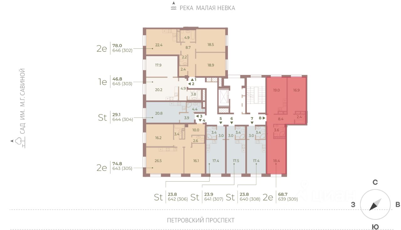 • 20 мин на авто до Стрелки В.О. и исторического центра города.